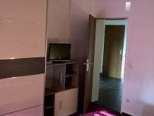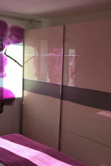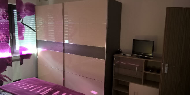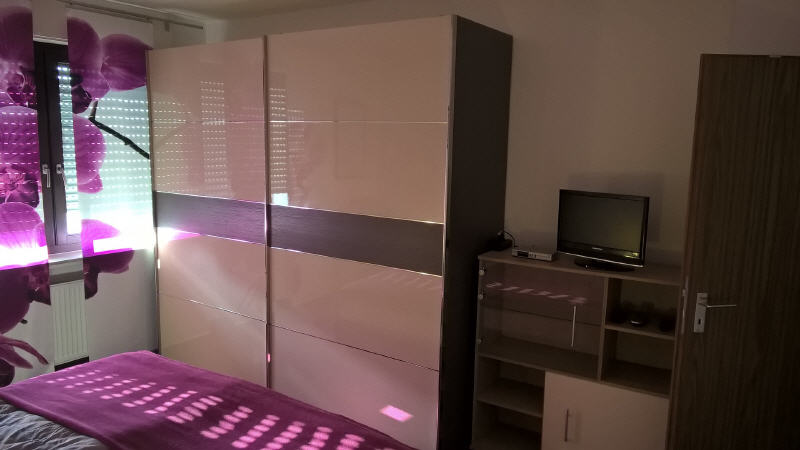 Das Schlafzimmer hat ein Doppelbett(180 x 200 ), grossen Kleiderschrank, Möglichkeit ein Reisebett abzustellen.Nachtschränke, Flachbild TV